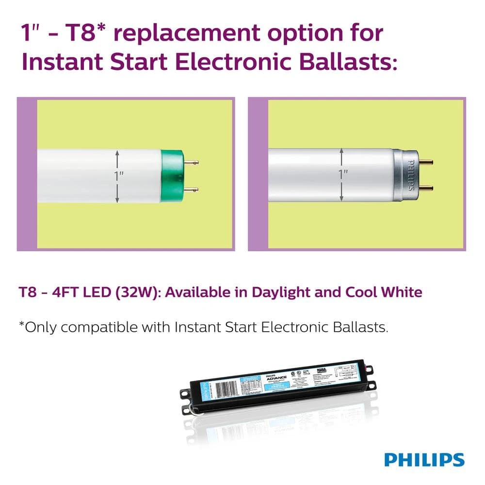 - Philips LED tubes are compatible with most instant start electronic ballasts all you have to do is simply plug and play; InstantFit works with over 200 ballasts, more than any other lamp, so you can be confident its going to perform as expected