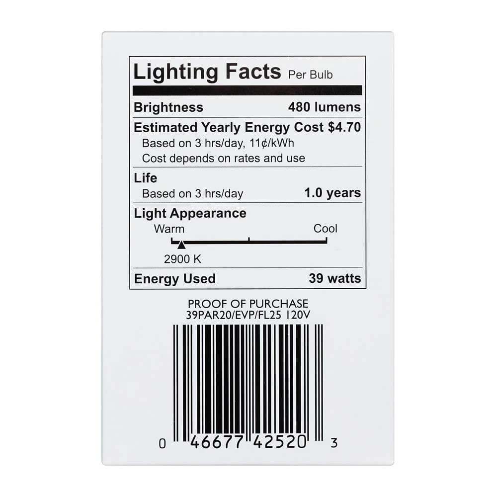Use the Philips energy efficient 39-Watt Halogen Soft White Floodlight Bulb in your living room, office, kitchen and outdoor security fixture. It reduces energy consumption without sacrificing the qualities of a traditional bulb and produces high-quality light more efficiently. It lasts approximately 1,100 hours and works for indoor and outdoor use.