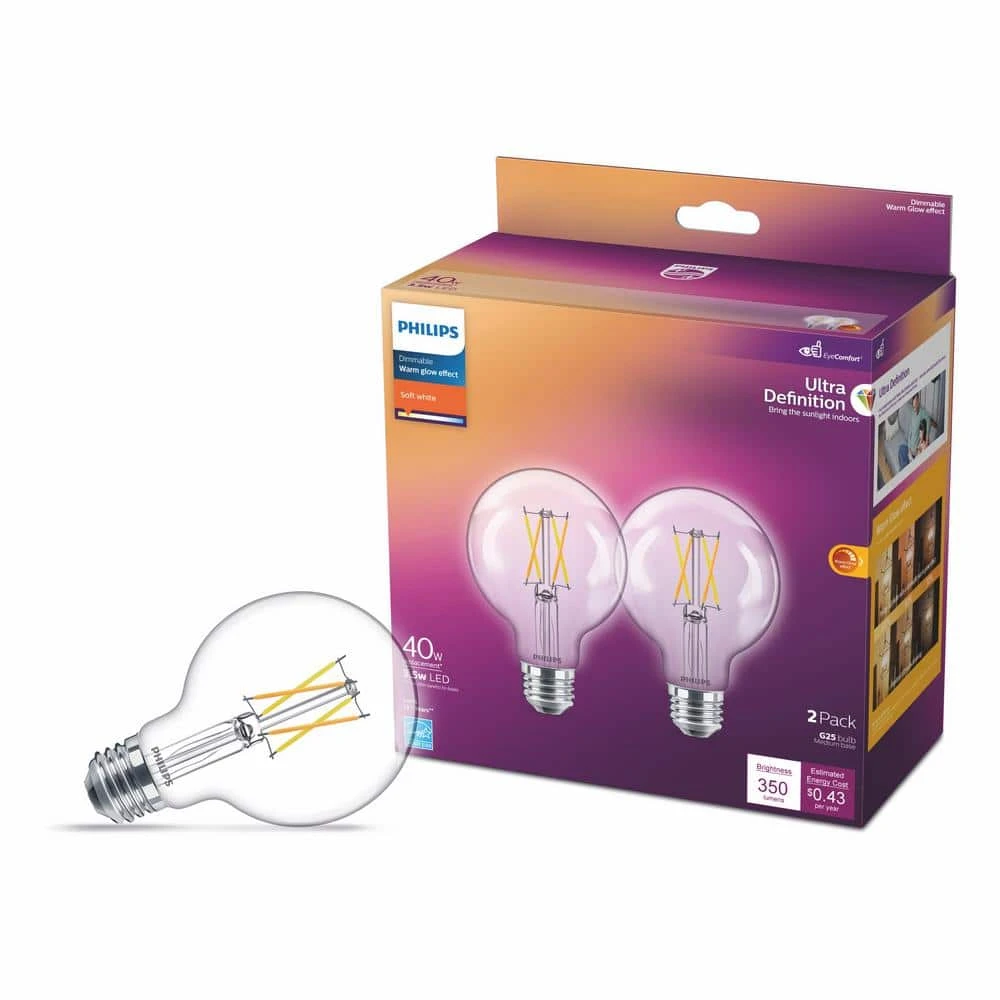 - Dims to a warm glow – this bulb dims to a cozy warm glow just like traditional incandescent bulbs