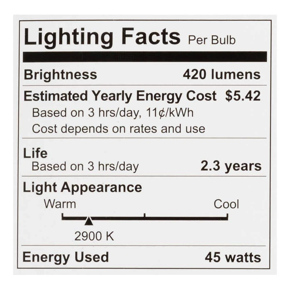 - Estimated yearly energy cost: $5.42 (based on 3 hours/day, 11c/kWh. cost depend on rates and use)