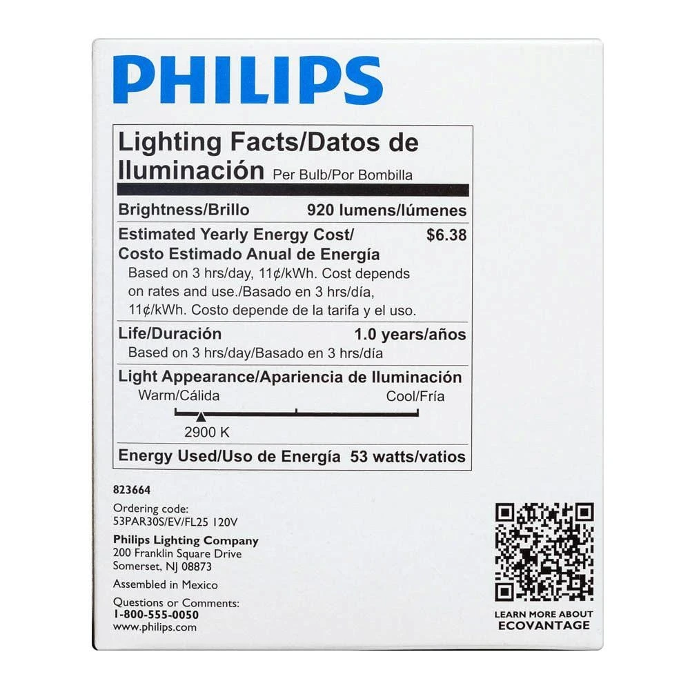 Use the Philips energy efficient 75W Equivalent Halogen Dimmable Spotlight Bulb indoors in kitchens, living rooms, dining rooms, offices, family rooms and bedrooms, as well as outdoors. This versatile bulb’s narrow beam of soft white light is great for general room, accent and landscape lighting. It uses 29% less energy compared to a standard incandescent light bulb.