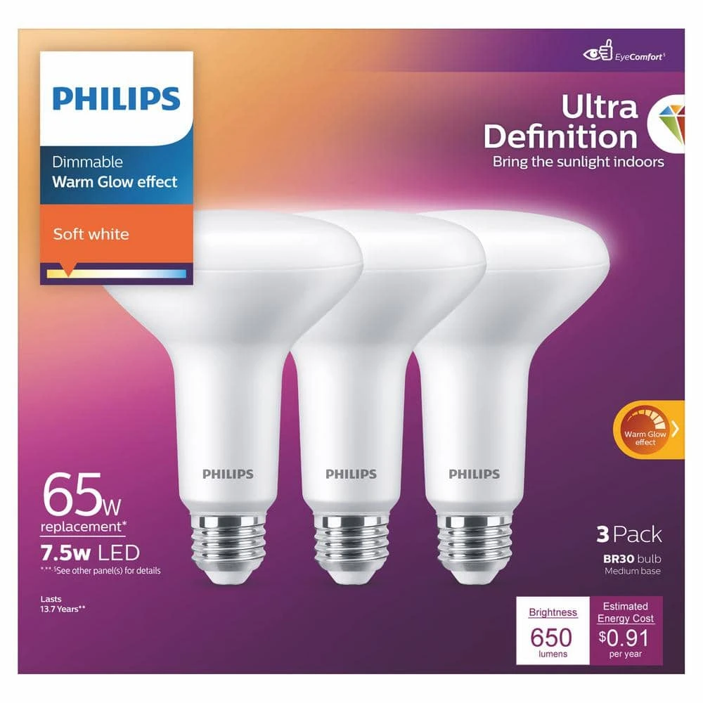 65-Watt Equivalent BR30 Ultra Definition Dimmable E26 LED Light Bulb Soft White with Warm Glow 2700K (3-Pack) by Philips