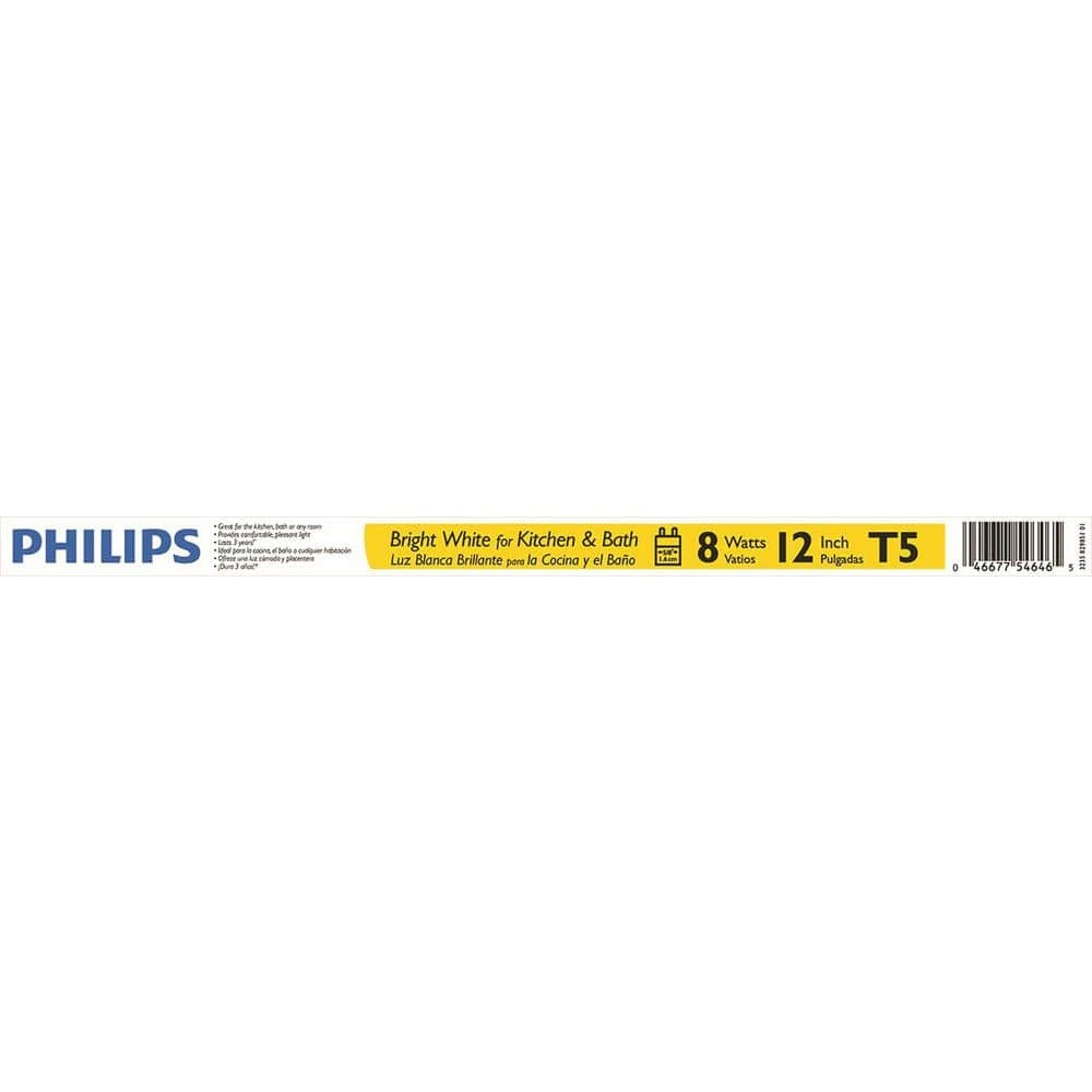 Philips Linear Fluorescent 8-Watt 12 in. T5 bright white light bulb (F8T5/Bright White 3000K) is ideal for use in kitchens and bathrooms or anywhere in your home where a soft white light is desired. It provides general room lighting and creates a comfortable, pleasant atmosphere. Philips T5 12 in. Linear Fluorescent light bulb last at least 6-years.