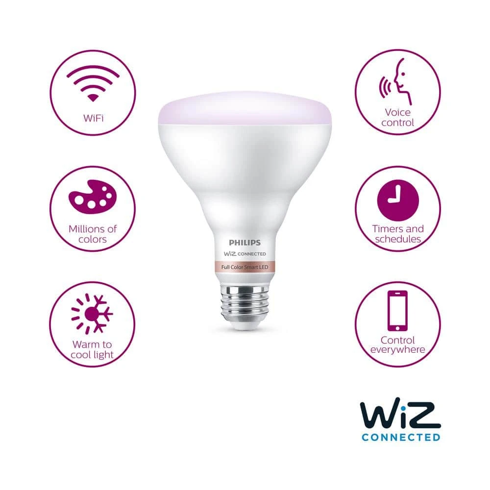 Philips Smart Wi-Fi LED lighting puts you in complete control of your lighting with smart bulbs that are easy to use, functional and affordable. We’ve made all your favorite high-quality Philips bulbs smarter, just connect them to your existing Wi-Fi network. Smart Color and White Light – Live life colorfully. Dynamic light modes make any room glow in your favorite color. Control your lights wherever you are using the WiZ app or your favorite compatible voice control device. Product requires a Wi-Fi connection to operate wirelessly. Compatible with WiZ apps and products along with Google Assistant, Alexa and Siri Shortcuts.