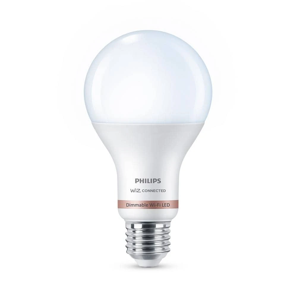 Philips Smart Wi-Fi LED lighting puts you in complete control of your lighting with smart bulbs that are easy to use, functional, and affordable. We’ve made all of your favorite high-quality Philips bulbs smarter, just connect them to your existing Wi-Fi network. Philips Wi-Fi lighting is WiZ-connected and controlled with the WiZ app. This Smart Dimming Daylight 100-Watt equivalent A-shape bulb brightens up your home with a cool, energizing daylight color. Control your lights wherever you are using the WiZ app or your favorite compatible voice control device. This product requires a Wi-Fi connection to operate wirelessly.