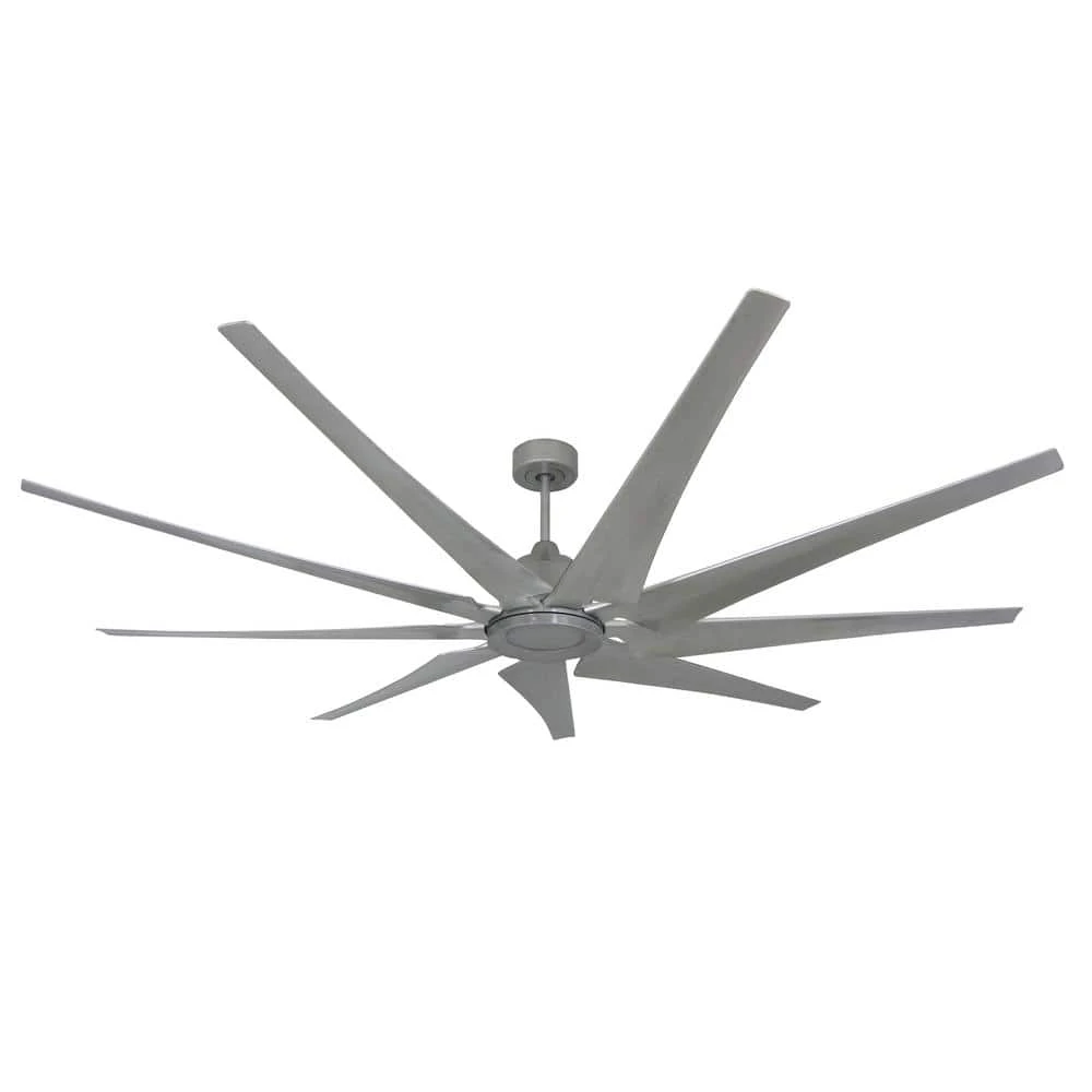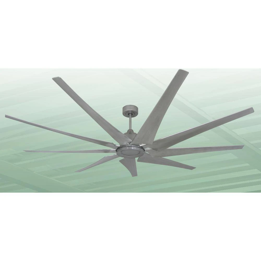 The large diameter (almost 7 ft.) Liberator ceiling fan features 9 extruded aluminum blades giving it a large physical presence in modern or contemporary designs as well as making it a powerful air moving machine. The Direct Current motor consumes very little electricity and has superb energy efficiency. The included remote transmitter can be hand-held, mounted on-wall or even the most requested in-wall in a switch box. The remote receiver is also WiFi enabled for the Smart Life app. This fan can easily be outfitted with a Light Kit (#610) if integrated lighting is also desired.