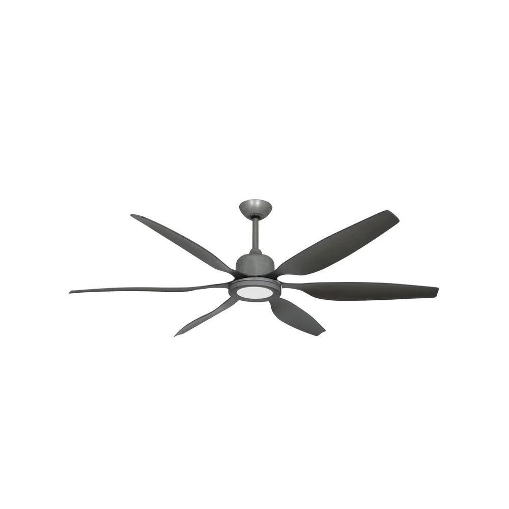 The large diameter Titan II Wifi ceiling fan features 6 contoured blades lending a contemporary or modern flair to this powerful air moving machine. The Direct Current motor consumes very little electricity and has superb energy efficiency. Clean lines and 6 blades makes this an appealing choice for industrial locations. The included remote control is WiFi compatible and also features a handheld control that can also be mounted in-wall or on-wall. This fan is outfitted with an integrated 18-Watt LED light.