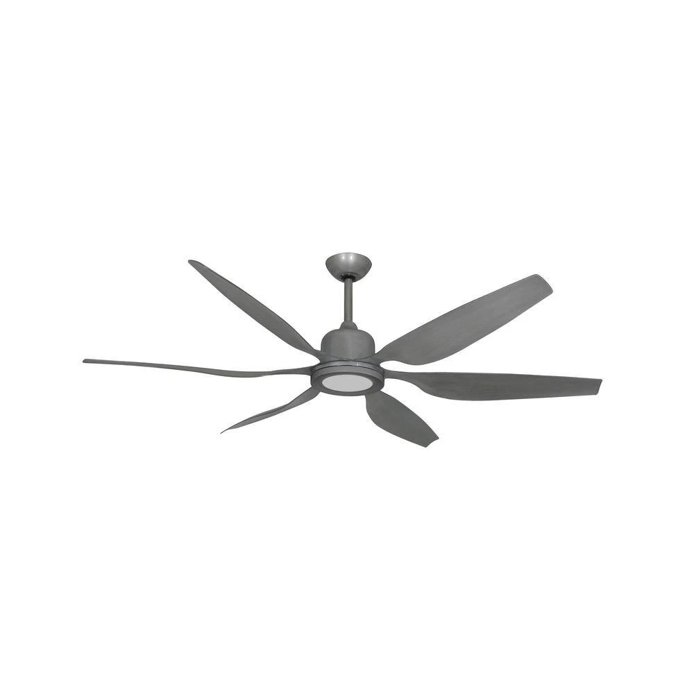 The large diameter Titan II Wifi ceiling fan features 6 contoured blades lending a contemporary or modern flair to this powerful air moving machine. The Direct Current motor consumes very little electricity and has superb energy efficiency. Clean lines and 6 blades makes this an appealing choice for industrial locations. The included remote control is WiFi compatible and also features a handheld control that can also be mounted in-wall or on-wall. This fan is outfitted with an integrated 18-Watt LED light.