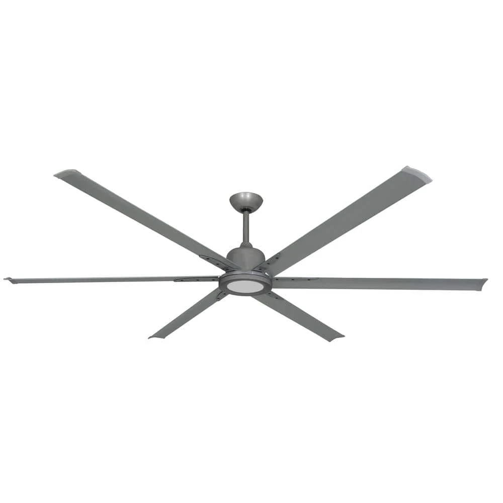 The large diameter Titan II Wi-Fi ceiling fan features 6 extruded aluminum blades lending a contemporary or modern flair to this powerful air moving machine. The Direct Current motor consumes very little electricity and has superb energy efficiency. Clean lines and 6 blades makes this an appealing choice for industrial locations. The included remote control is Wi-Fi compatible and also features a handheld control that can also be mounted in-wall or on-wall. This fan is outfitted with an integrated 18-Watt LED light.