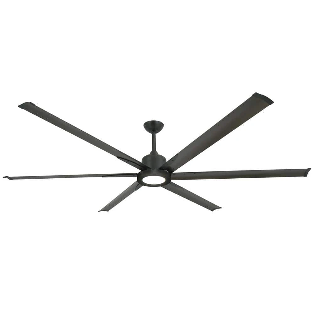 The large diameter Titan II Wi-Fi ceiling fan features 6 extruded aluminum blades lending a contemporary or modern flair to this powerful air moving machine. The Direct Current motor consumes very little electricity and has superb energy efficiency. Clean lines and 6 blades makes this an appealing choice for industrial locations. The included remote control is Wi-Fi compatible and also features a handheld control that can also be mounted in-wall or on-wall. This fan is outfitted with an integrated 18-Watt LED light.